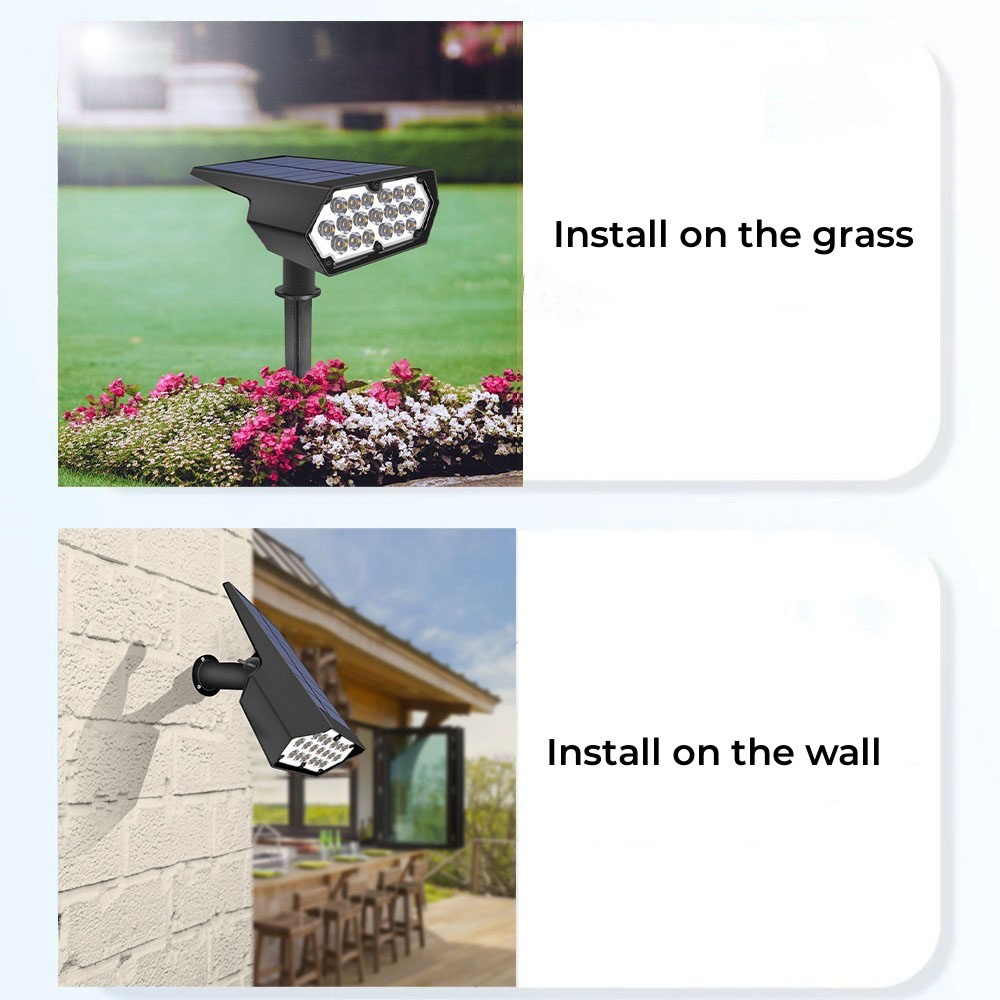 O holofote solar para gramado com 19 LEDs de alta eficiência foi projetado para iluminar jardins, caminhos ou paisagens. Esse luz solar de grama oferece uma saída de lúmen impressionante de 250LM, garantindo um brilho radiante que realça a beleza dos espaços ao ar livre.